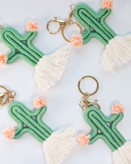 Handmade Blossom Cactus Macrame Keychain, Bag Charm